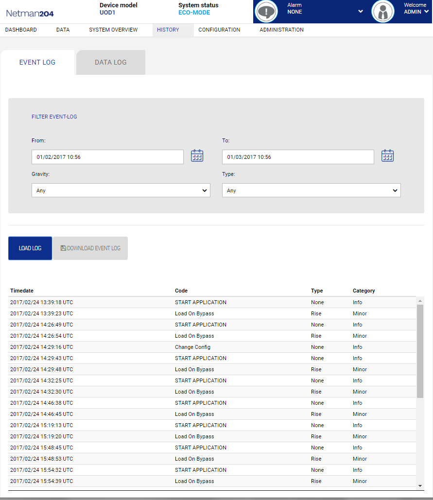 - Event and Data log improved, implemented also a filter to focus on a specific alarm type or date.